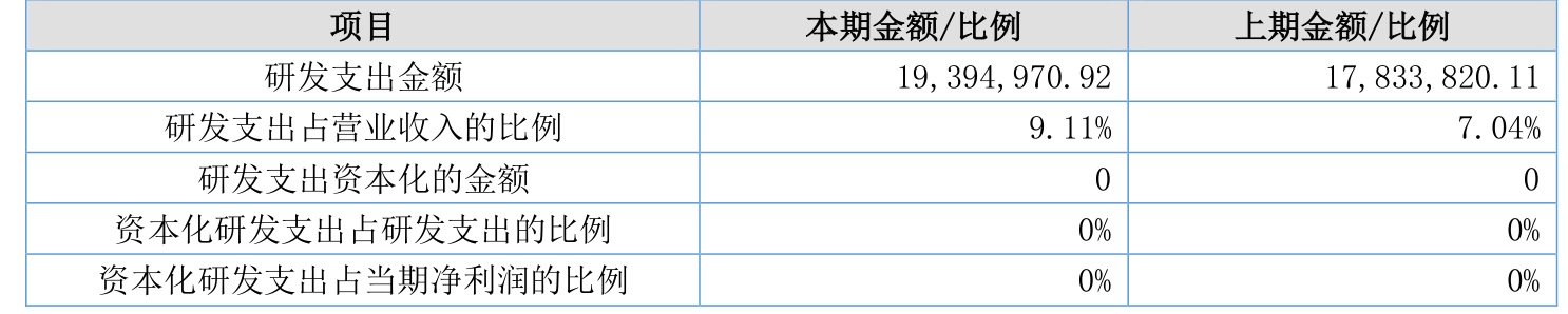 2025年全年,公司研发插足金额为1939.5万元,同比增长8.75%;研发插足占贸易收入比例为9.11%,比拟上年同时上涨2.07个百分点。此外,公司全年研发插足成本化率为0%。