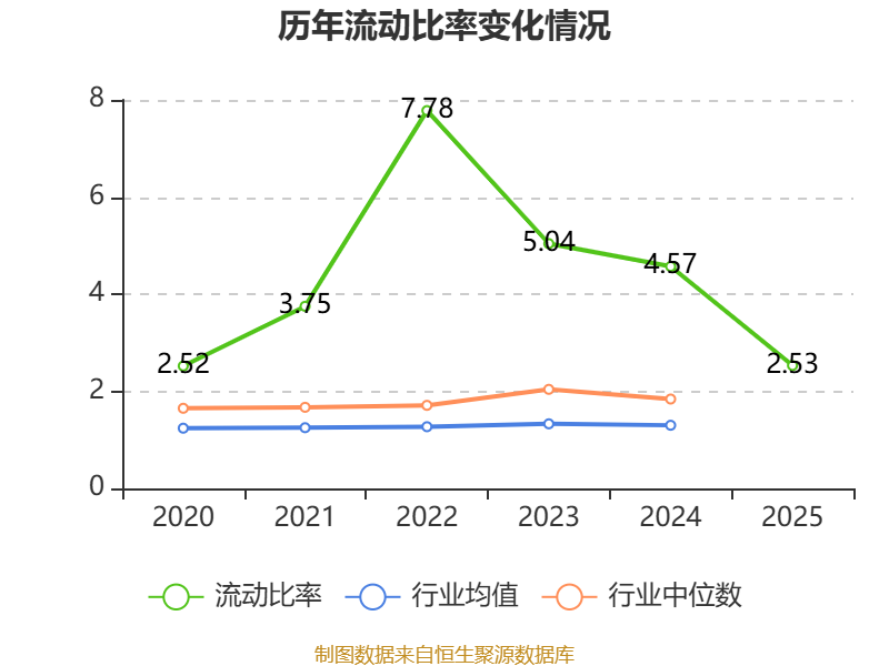 2025年,公司流动比率为2.53,速动比率为2.01。